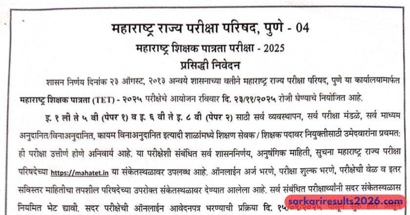 Thousands of aspiring teachers took the exam on 23 November 2025, and now it’s time to see where you stand. Head over to the official site mahatet.in or use trusted platforms like www.sarkariresults2026.com for quick updates and direct guidance.