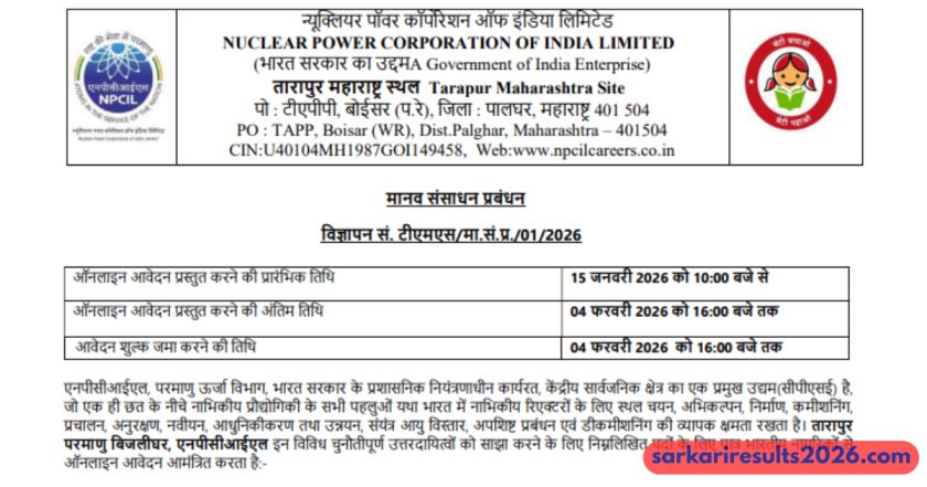 Are you eyeing a stable career in India’s nuclear energy sector? The Nuclear Power Corporation of India Limited (NPCIL) has just dropped its latest NPCIL Recruitment 2026, offering 114 exciting positions across various roles. As a premier public sector enterprise under the Department of Atomic Energy, NPCIL powers the nation’s energy needs with safe, reliable nuclear plants. This opportunity is perfect for skilled professionals ready to contribute to clean energy. For the latest updates, head to www.sarkariresults2026.com – your go-to hub for sarkari job alerts.